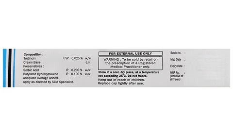Tretin 0.025% Cream is a topical retinoid formulation containing tretinoin, a derivative of vitamin A,...