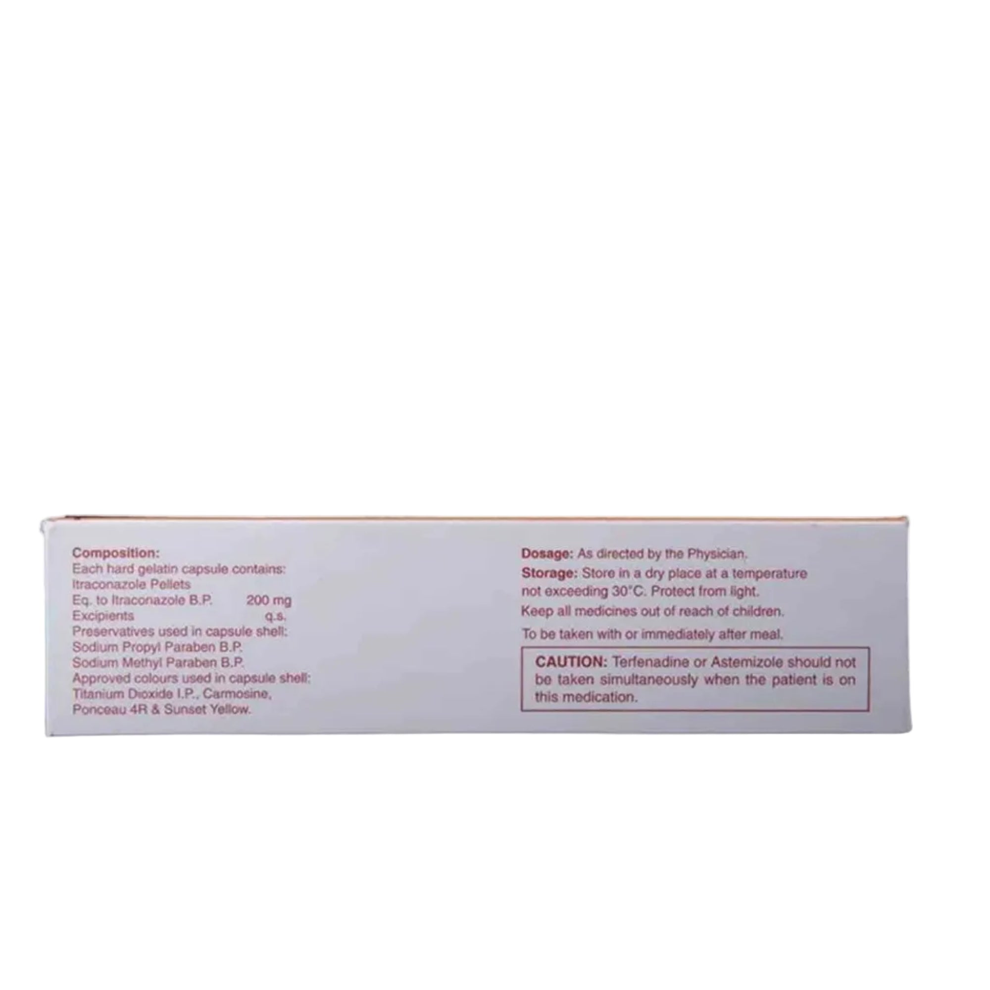 This medication is commonly prescribed as part of a dermatologist- or physician-guided treatment plan for fungal infections involving areas such as the oral cavity, nails, or other affected regions. Canditral 200 Capsule should be taken strictly as directed to ensure safe and appropriate use.