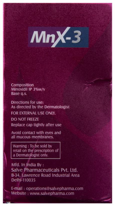 Mnx-3% Topical Solution is a topical scalp formulation developed for targeted application on areas experiencing...