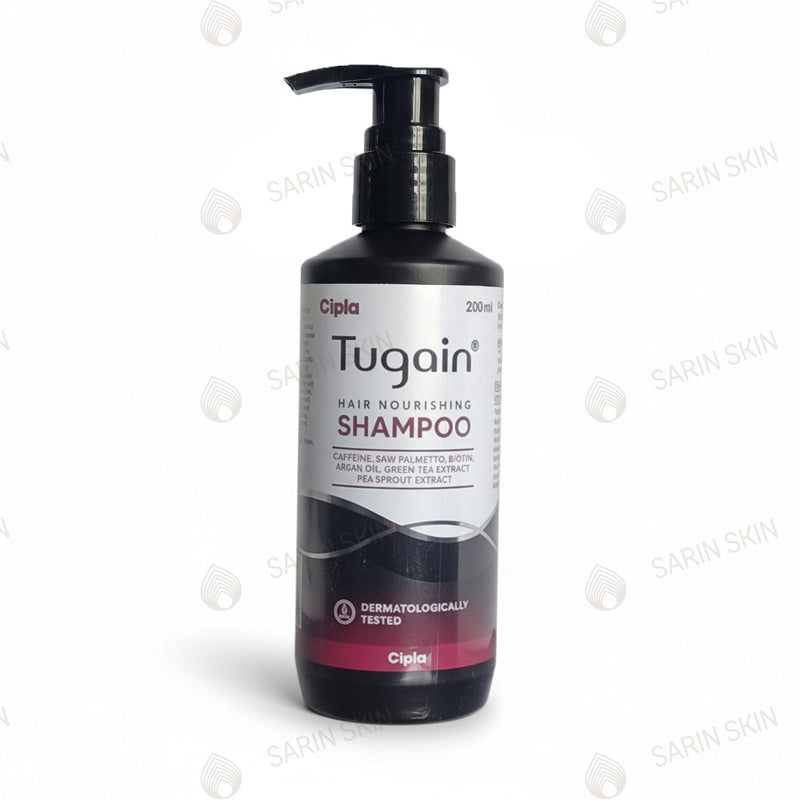 Tugain Hair Nourishing Shampoo is a dermatologist-tested daily care shampoo designed to gently cleanse the scalp while nourishing hair roots and strands. Formulated with a powerful blend of Caffeine, Saw Palmetto, Biotin, Argan Oil, Green Tea Extract, and Pea Sprout Extract, it helps support stronger-looking hair and improved scalp health with regular use.
