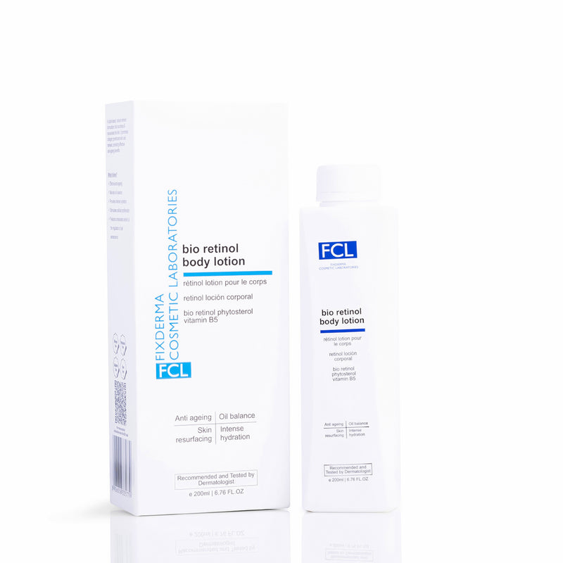 FCL Bio Retinol Body Lotion is a dermatologist-formulated, luxurious body moisturizer designed to nourish, smooth, and rejuvenate the skin. Enriched with Bio Retinol and natural plant oils, it delivers deep hydration, enhances elasticity, and promotes a visibly firmer and youthful skin texture.