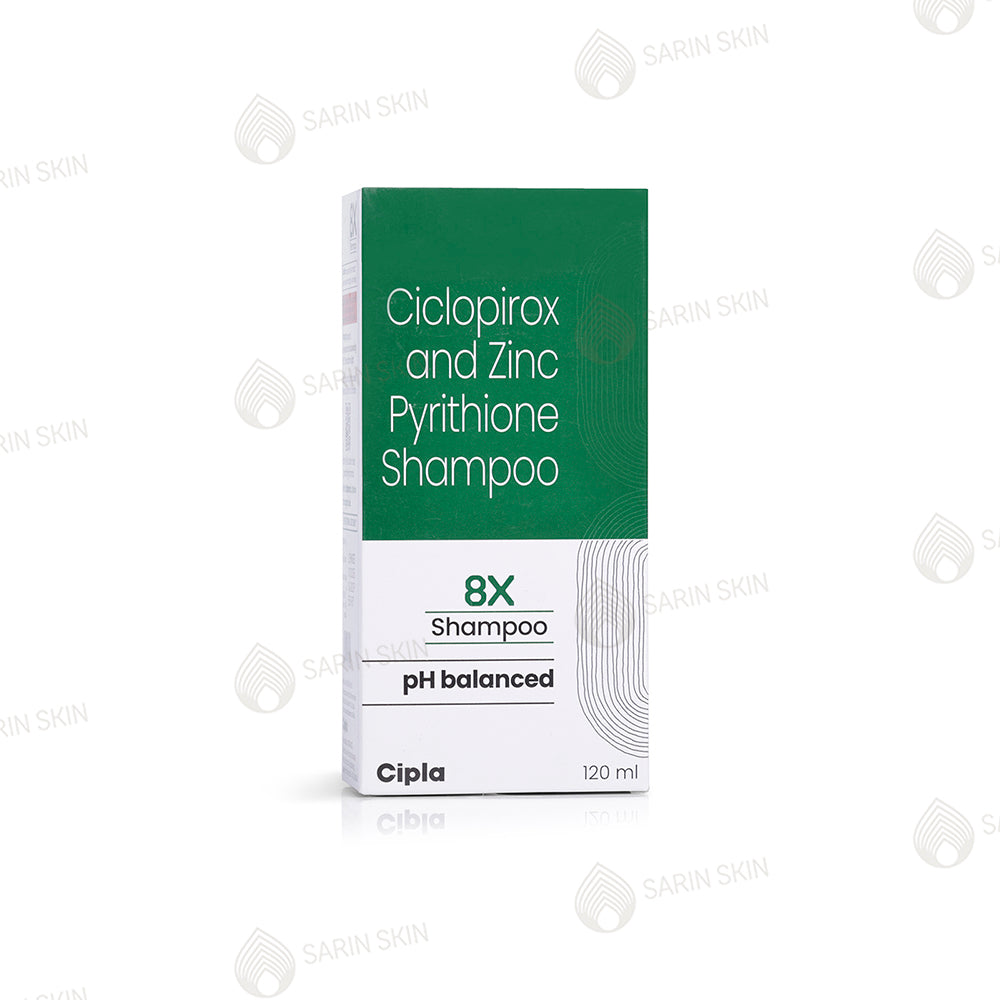 8X Shampoo is a medicated anti-dandruff cleanser made with Ciclopirox 1% and Zinc Pyrithione 1%....
