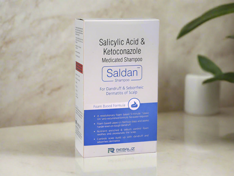 Saldan Shampoo is a cleansing shampoo formulated with ketoconazole (2%) and salicylic acid (2%). It is used under medical guidance as part of routines that support scalp cleanliness and comfort. Its formula contributes to scalp balance, leaving hair feeling refreshed and healthy-looking with regular use.