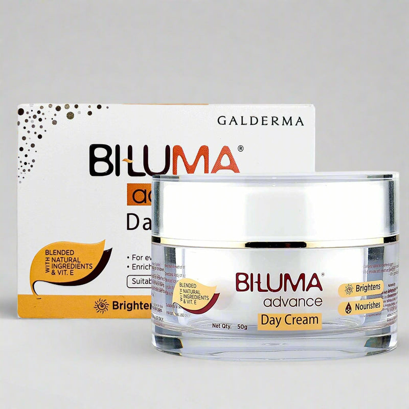 Biluma Advance Day Cream is a dermatologically tested brightening and nourishing cream enriched with Kojic Acid, Arbutin, Liquorice Extract, and Vitamin E to reduce pigmentation and enhance skin radiance. Blended with natural actives, it helps even out skin tone, fade dark spots, and provide antioxidant protection. The lightweight, non-greasy formula hydrates deeply while improving skin texture and glow. Ideal for daily use, Biluma Advance Day Cream promotes visibly brighter, healthier-looking skin and is suitable for all skin types, including dull and pigmented skin.