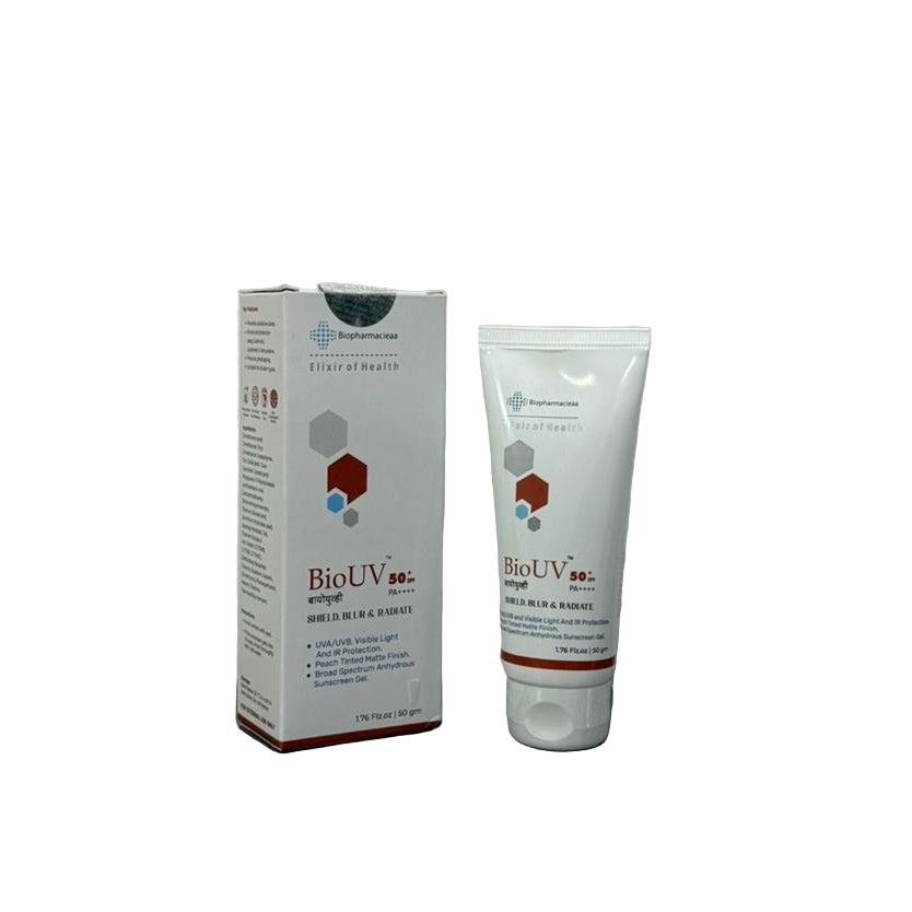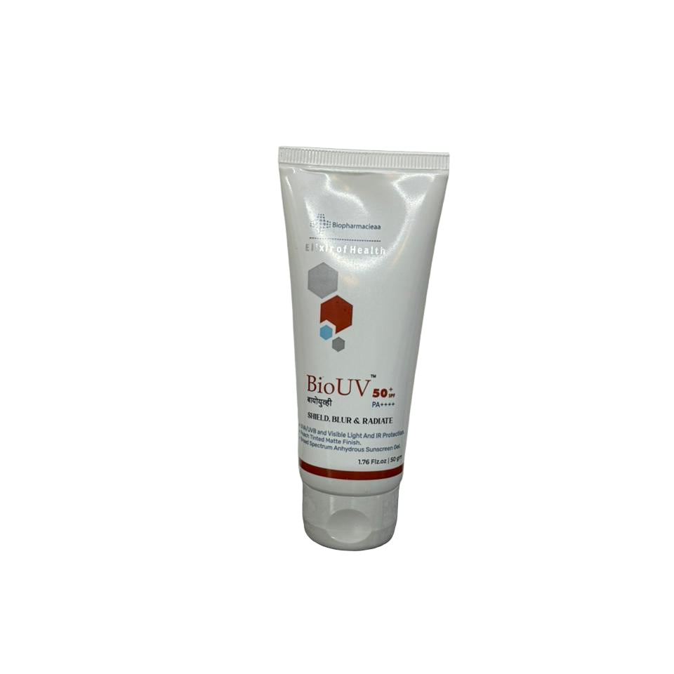 BioUV Anhydrous Sunscreen Gel SPF 50+ PA+++ is a dermatologist-tested, water-free formula that delivers high, broad-spectrum sun protection without any greasy feel. Designed for modern, everyday wear, this fast-absorbing gel provides a smooth matte finish with zero white cast—ideal for humid Indian weather. Enriched with Chamomile, Aloe Vera, and Green Tea Extracts, it offers antioxidant support while keeping the skin calm, hydrated, and comfortable throughout the day.