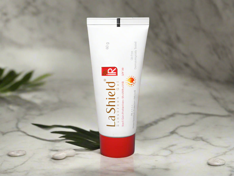 La Shield IR Sunscreen Gel SPF 30 is a mineral sunscreen providing broad-spectrum protection against UVA, UVB, and infrared rays. Ideal for indoor use, La Shield IR Sunscreen Gel offers an oil-free, non-sticky, matte finish with no white cast. Crafted with skin-friendly elements, it hydrates, soothes, and repairs sun-damaged skin while being free from harmful chemicals, making it suitable for all skin types.