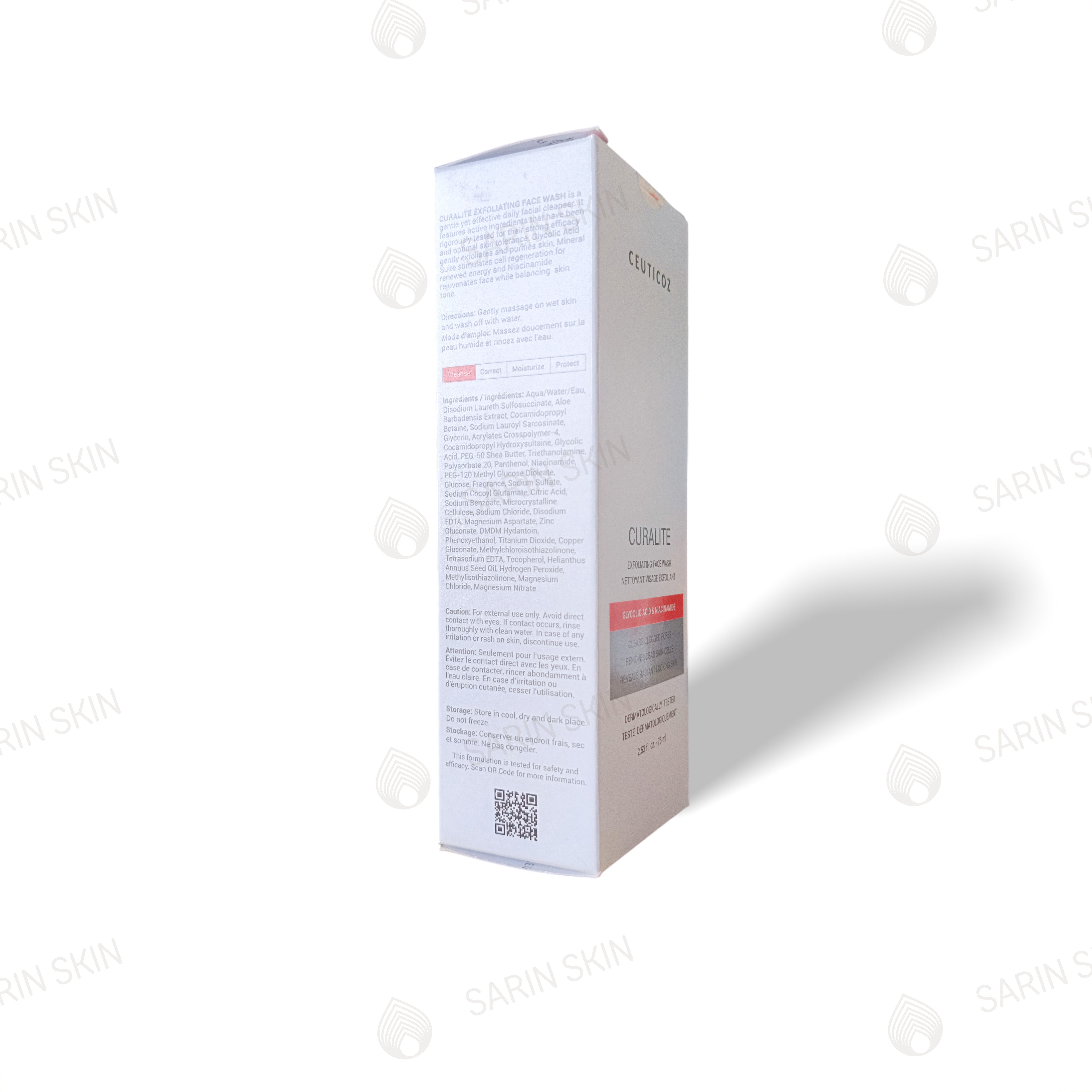 Ceuticoz Curalite Exfoliating Face Wash is a rejuvenating cleanser designed to gently exfoliate and purify the skin. Infused with salicylic acid, glycolic acid, and natural fruit extracts, this face wash removes dead skin cells, unclogs pores, and reduces excess oil. Its gentle formula promotes a brighter, smoother complexion without causing irritation. Suitable for all skin types, particularly oily and acne-prone skin, Ceuticoz Curalite Exfoliating Face Wash is ideal for daily use to maintain clear, healthy skin.