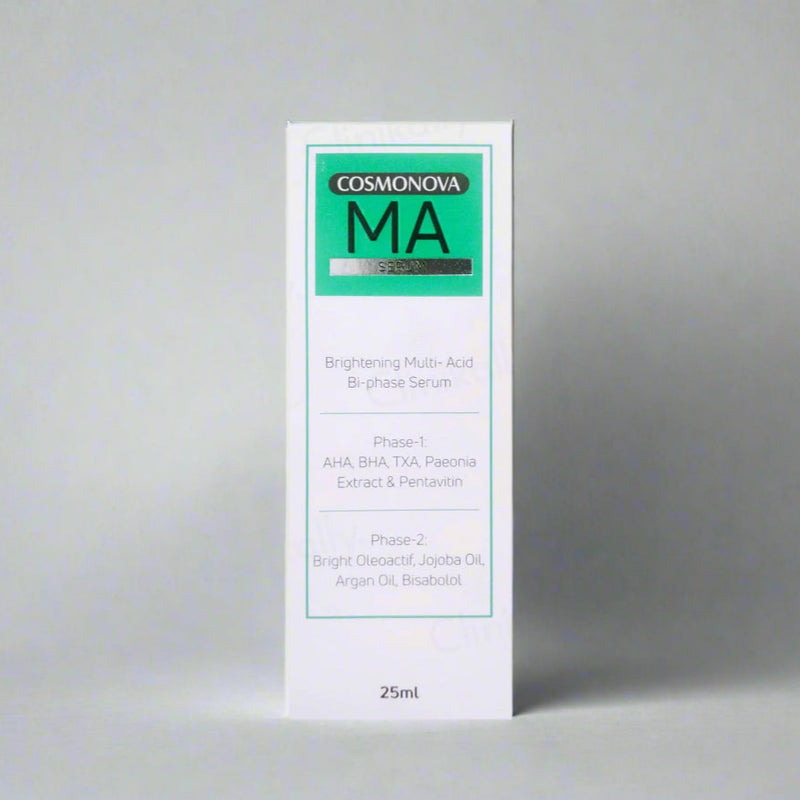 Cosmonova MA Brightening Multi-Acid Bi-Phase Serum is a dual-phase skincare treatment designed to exfoliate and...