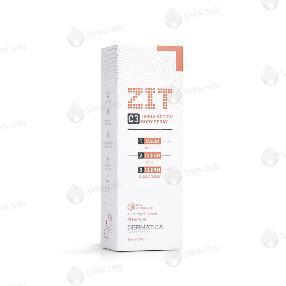 DERMATICA Zit C-3 Triple-Action Body Spray is designed for all skin types, providing a solution...