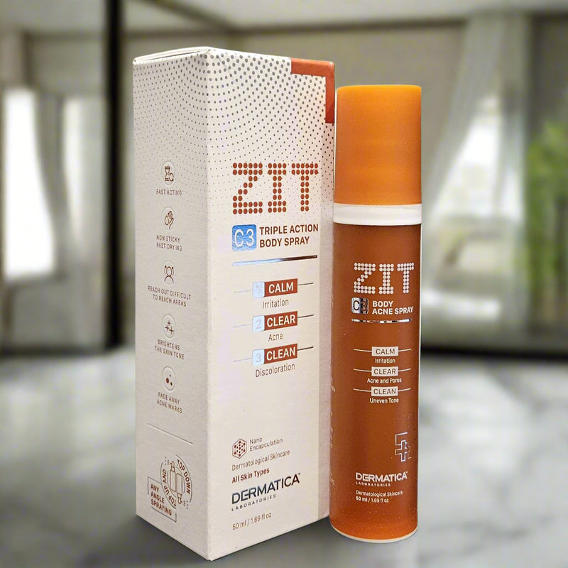 DERMATICA Zit C-3 Triple-Action Body Spray is designed for all skin types, providing a solution...