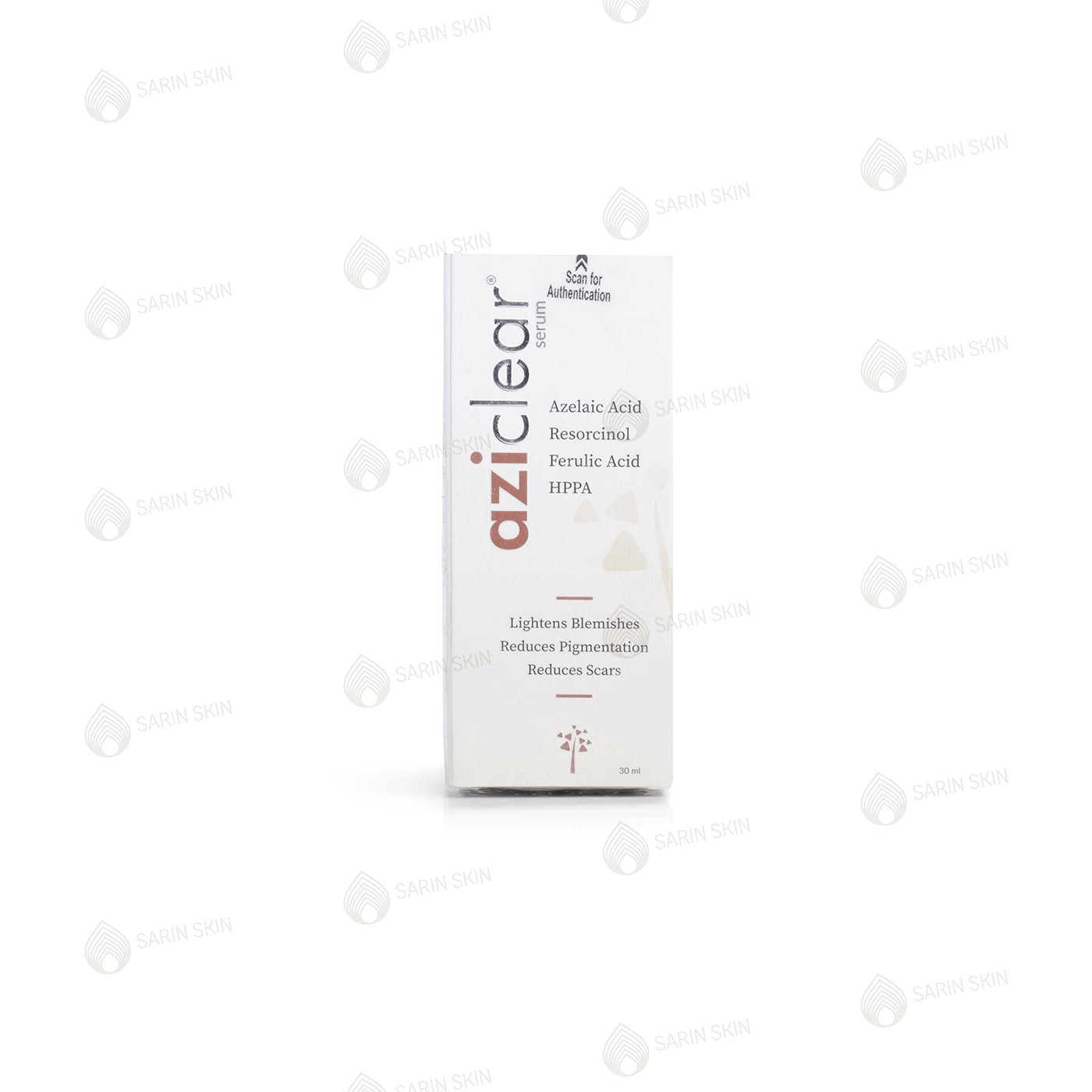 Aziclear Serum is an advanced skincare formulation that combines Azelaic Acid, Resorcinol, Ferulic Acid, Hyaluronic Acid, and Hydroxyphenoxy Propionic Acid. This blend supports gentle exfoliation, helps refine skin texture, and contributes to a smoother, more even-toned appearance. The serum also helps maintain skin hydration and radiance as part of a daily skincare routine.