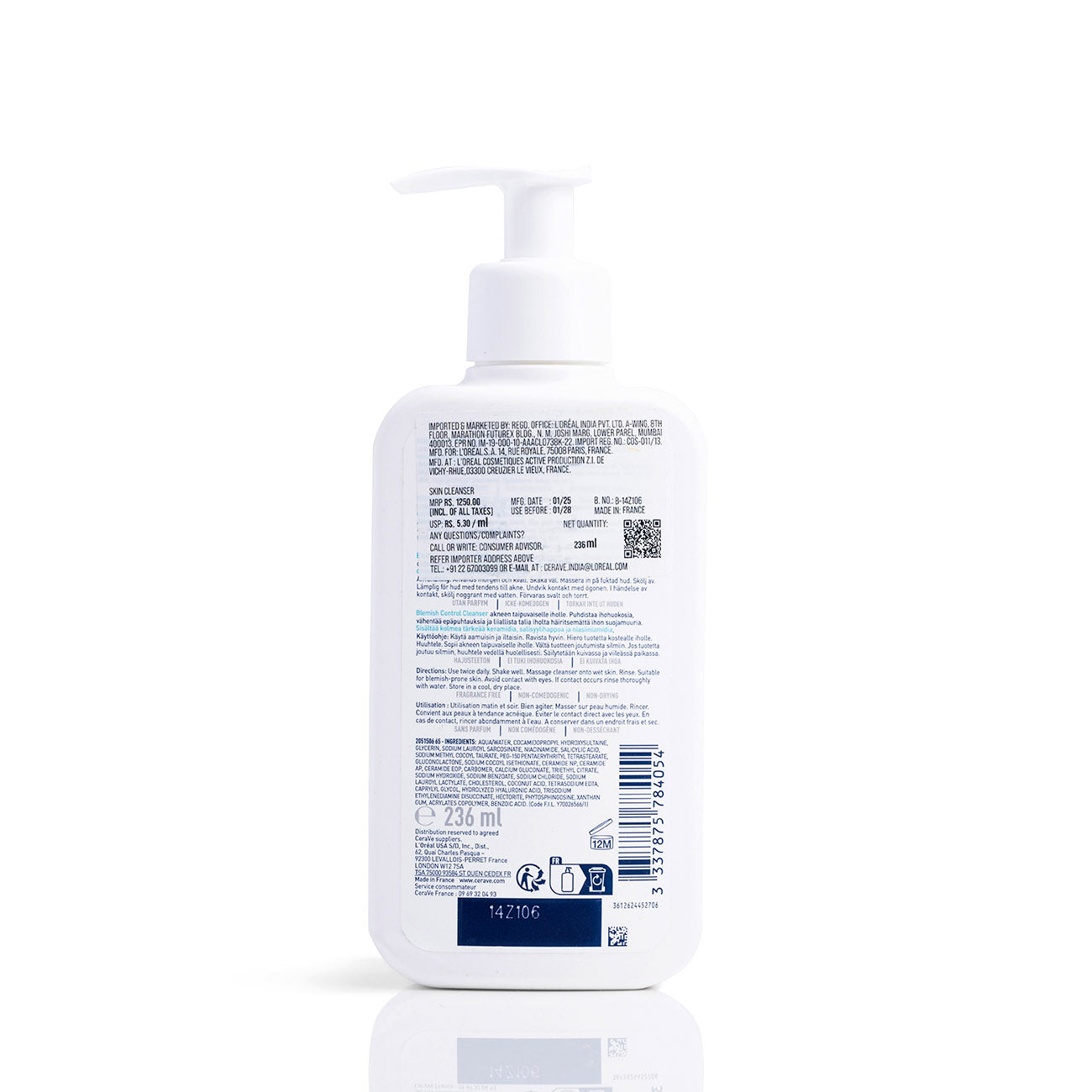 CeraVe Blemish Control Cleanser for Blemish-Prone Skin is a dermatologist-developed cleanser that gently exfoliates dead skin cells and unclogs pores without disrupting the skin barrier. Formulated with oil-absorbing technology, niacinamide, salicylic acid, and essential ceramides, it reduces the appearance of blemishes, blackheads, and excess oil, leaving skin refreshed and healthy-looking. Ideal for daily use on blemish-prone skin.