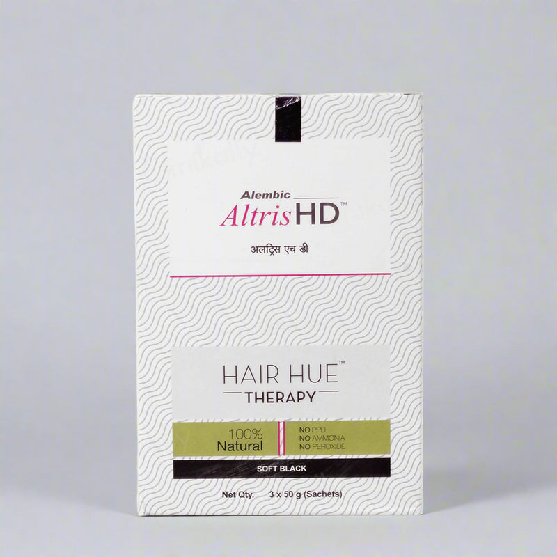 Altris HD Hair Hue Therapy Soft Black is a plant-based hair colour care option designed to provide a soft black shade while maintaining the hair’s natural look and feel. It blends traditional botanicals such as Indigo, Mehndi (Henna), Amla and Bhringraj to gently coat the hair shaft, leaving it conditioned, smooth and naturally lustrous.