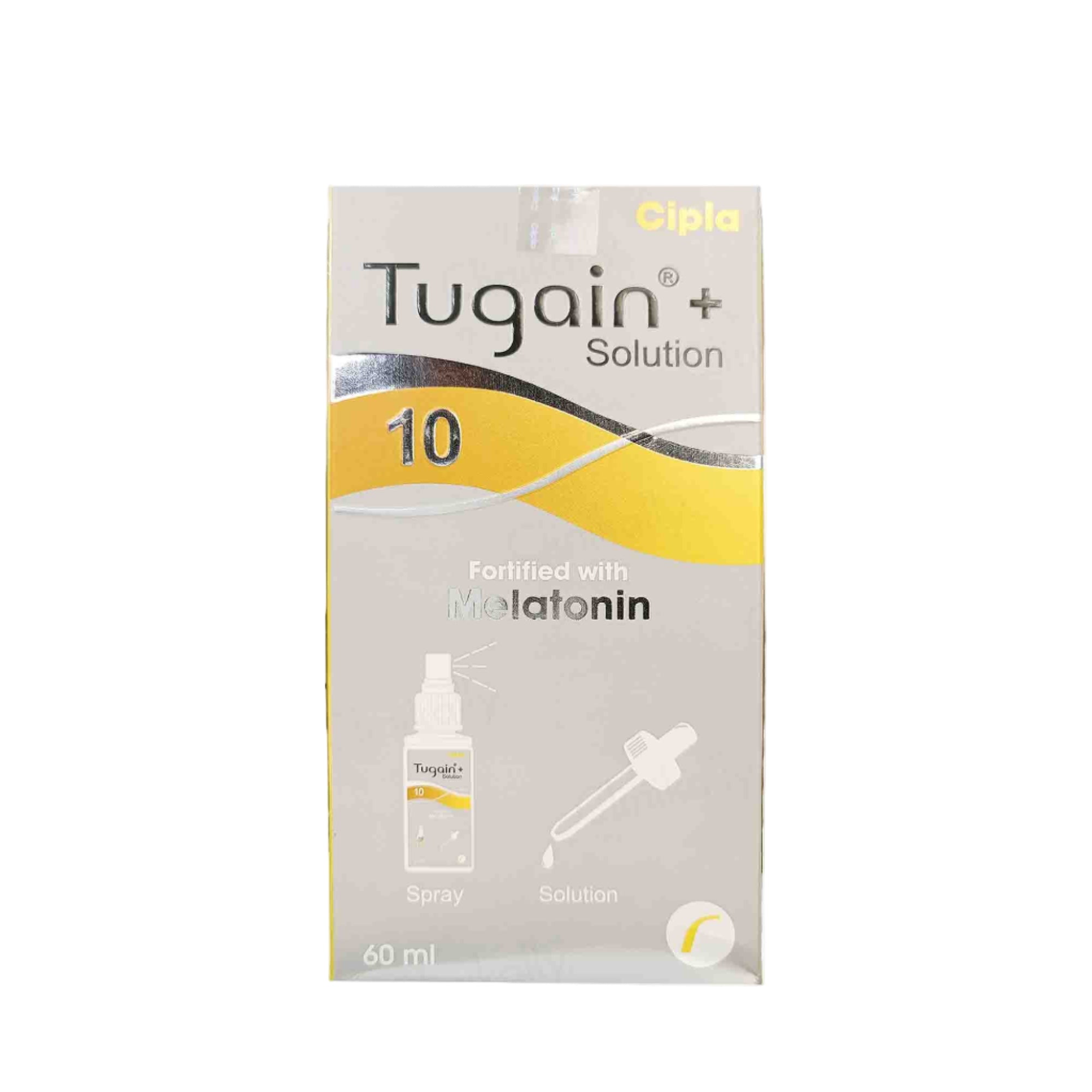 Tugain + 10% Topical Solution contains 10% Minoxidil and is used as a leave-on scalp...