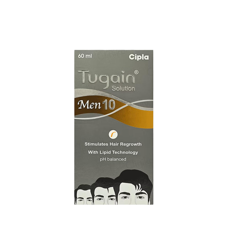 Tugain Men 10 Topical Solution is a leave-on scalp formula containing Minoxidil 10% along with Finasteride. It is used under medical guidance by adult men who want to support the appearance of fuller, healthier-looking hair. The lightweight liquid spreads easily on the scalp and works best as part of a consistent daily routine.