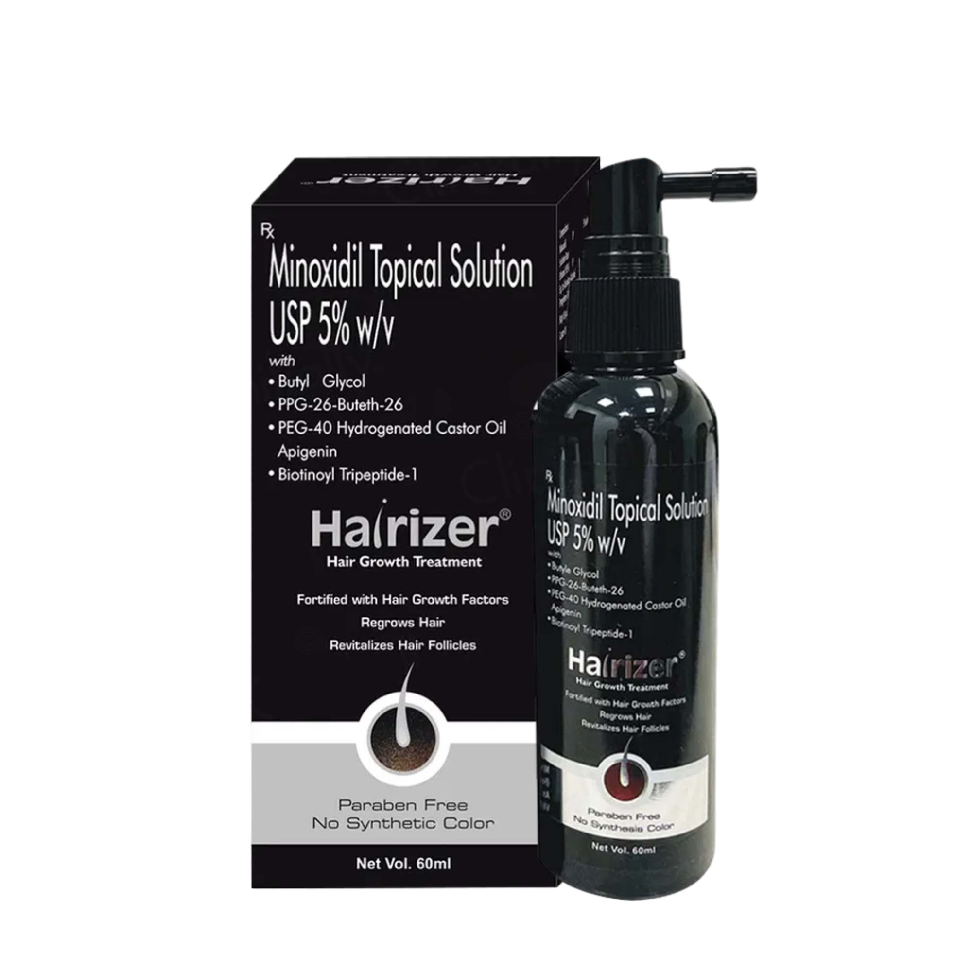 Hairizer Topical Solution contains Minoxidil and is used as a leave-on formula for adults under...