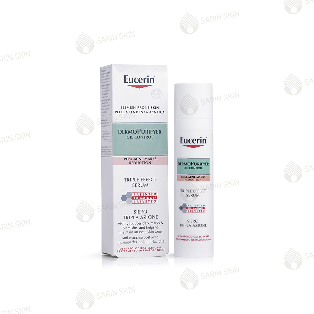 Eucerin DermoPurifyer Oil Control Triple Effect Face Serum is a targeted treatment for blemish-prone skin that reduces post-acne marks, prevents new breakouts, and controls shine. Formulated with patented Thiamidol and salicylic acid, this dermatologically-tested serum delivers visible results in just 2 weeks.
