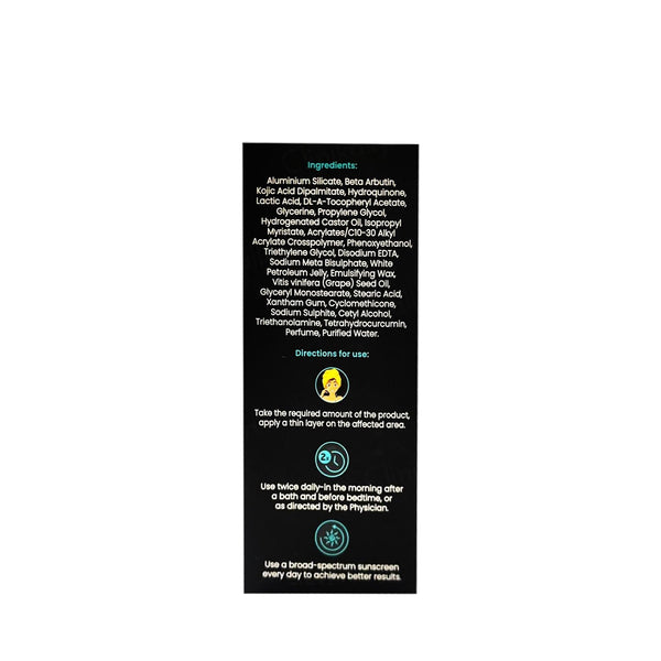 Lumacip HQ Depigmenting Complex is a dermatologist-tested cream designed to lighten dark spots, melasma, and uneven skin tone. Powered by Hydroquinone, Beta Arbutin, Kojic Acid Dipalmitate, and Lactic Acid, it works by inhibiting melanin production, exfoliating dead skin cells, and brightening pigmentation. With added Vitamin E, Grape Seed Oil, and DL-Alpha Tocopheryl Acetate, it nourishes and protects the skin barrier. This non-comedogenic, non-irritant, and steroid-free formula is ideal for daily use, helping to achieve a visibly even, radiant complexion.