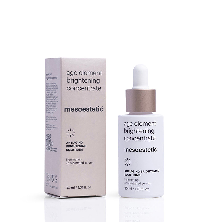 Mesoestetic Age Element Brightening Concentrate is designed to support smoother, brighter, and healthier-looking skin. It uses acetyl hexapeptide-1 to help reduce facial wrinkles, while biopeptides work to calm irritation and support a more even tone. Lavender extract helps lighten dark spots and soothe the skin. The plant-based retinol encourages gentle cell renewal and supports collagen, improving the skin’s overall firmness and clarity.