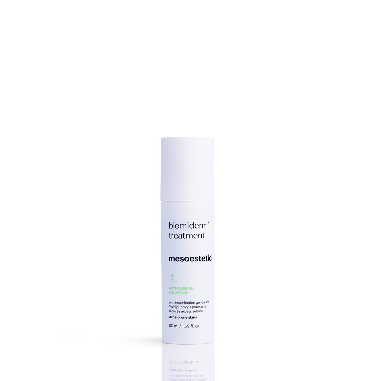 Mesoestetic Blemiderm Treatment is a night-time cream-gel designed for oily and acne-prone skin. It blends azelaic acid, shikimic acid, and liposomal retinol to help clear pores, control excess oil, and support skin renewal while you sleep. The lightweight texture absorbs fast and stays comfortable through the night, helping the skin look clearer and smoother over time.