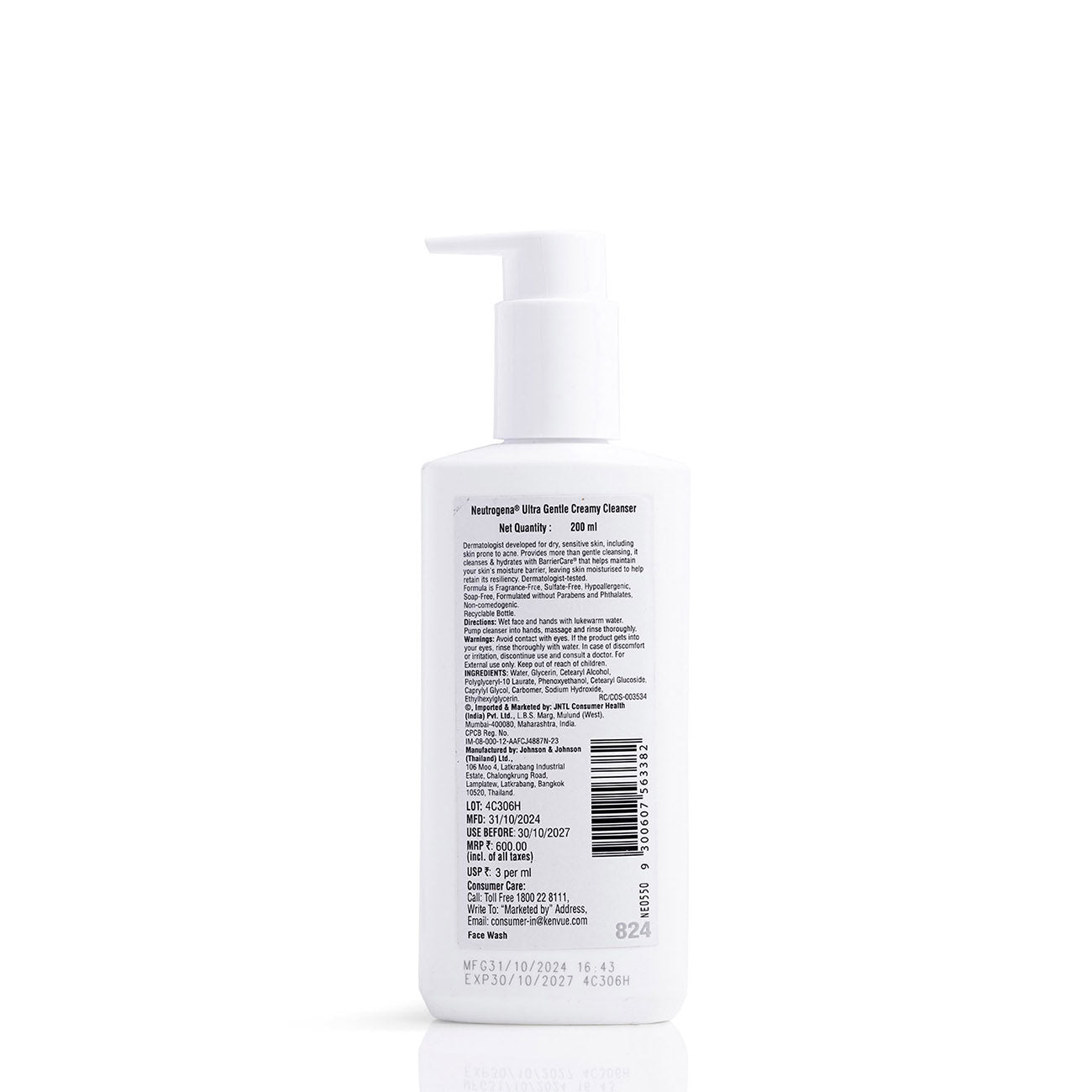 Neutrogena Ultra Gentle Creamy Cleanser is a soft, hydrating face wash made for dry, oily, and sensitive skin. It clears away dirt, oil, and makeup without stripping the skin or disturbing its moisture barrier. With BarrierCare Technology, it helps the skin stay calm, hydrated, and resilient. Fragrance-free and non-comedogenic, it suits people prone to eczema, rosacea, or acne.