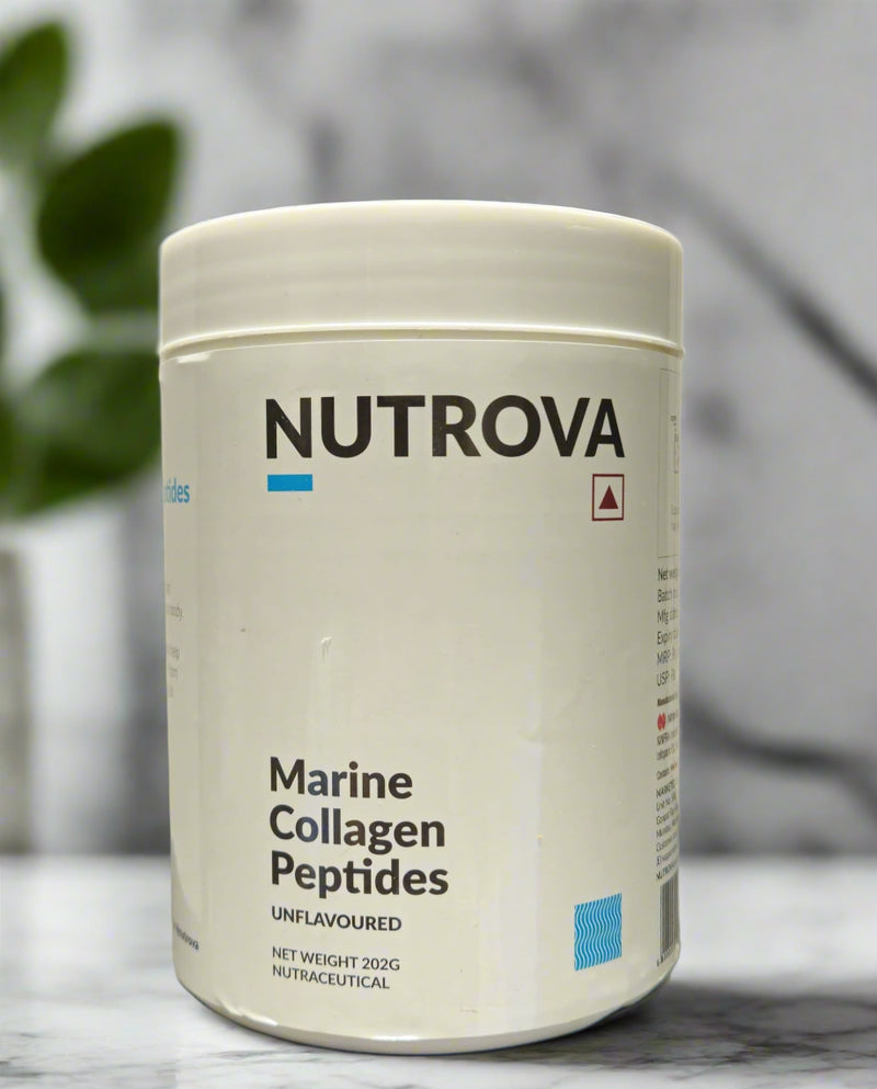 Nutrova Marine Collagen Peptides is a clean, well-tested nutrition supplement made with over 90 percent hydrolyzed marine collagen and added Vitamin C. The low-molecular-weight peptides are designed for easy absorption, helping the body maintain its natural collagen levels. With regular use, it supports healthy skin, stronger hair and nails, and overall bone and joint wellness. It fits easily into a daily routine and can be taken by anyone looking to add gentle, science-backed collagen support to their lifestyle.