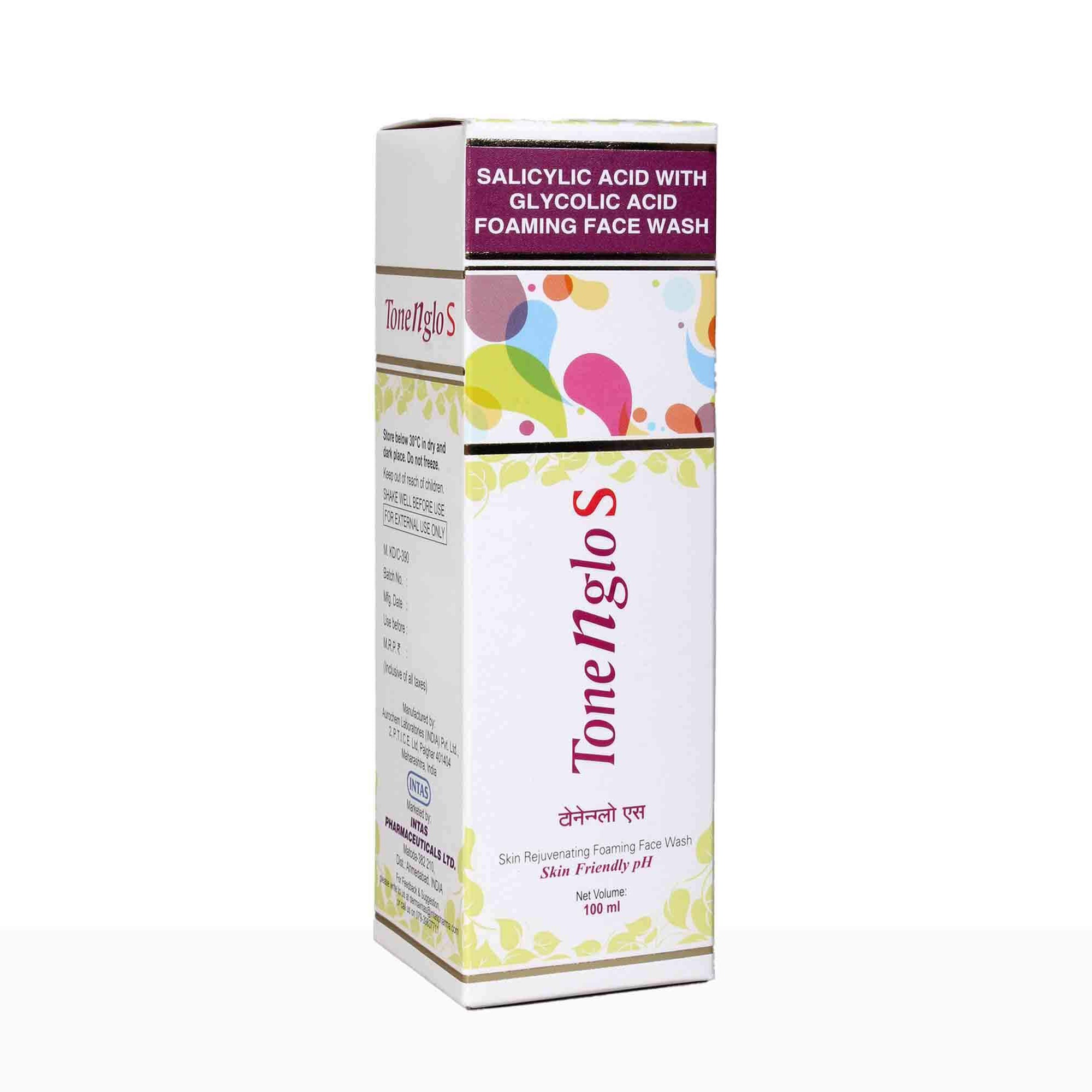 Tonenglo S Foaming Face Wash deeply cleanses and exfoliates to remove dirt, oil, and dead skin cells, leaving skin clean, fresh, and hydrated. Enriched with Aloe Vera, Glycolic Acid, and Vitamin E, it balances sebum production and provides a supple, soft texture. Suitable for all skin types, this face wash ensures healthy, problem-free skin.