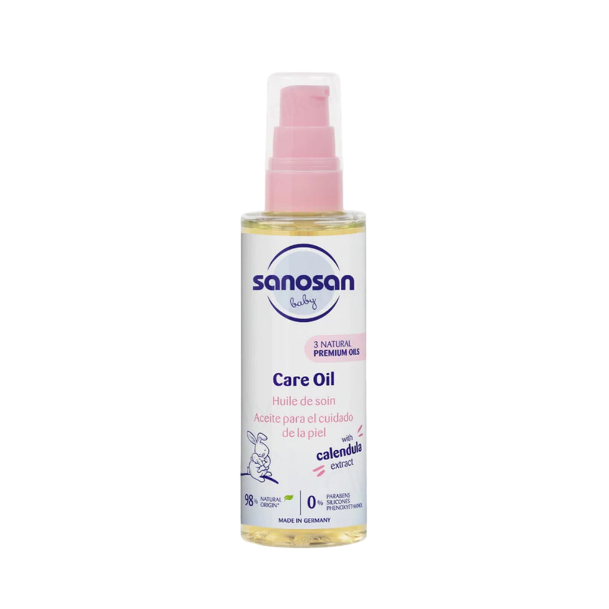 Sanosan Baby Care Oil With Calendula Extract is a gentle and nourishing formula designed to protect and hydrate your baby's delicate skin. Infused with 3 natural premium oils, including sunflower, olive, and sweet almond oil, it soothes irritation and strengthens the skin’s natural barrier. Enriched with calendula extract and bisabolol, this care oil calms sensitive skin, supports skin regeneration, and leaves the baby’s skin soft, supple, and lightly fragrant. It’s ideal for baby massages or as an after-bath moisturizer and is free from parabens, silicones, and phenoxyethanol.