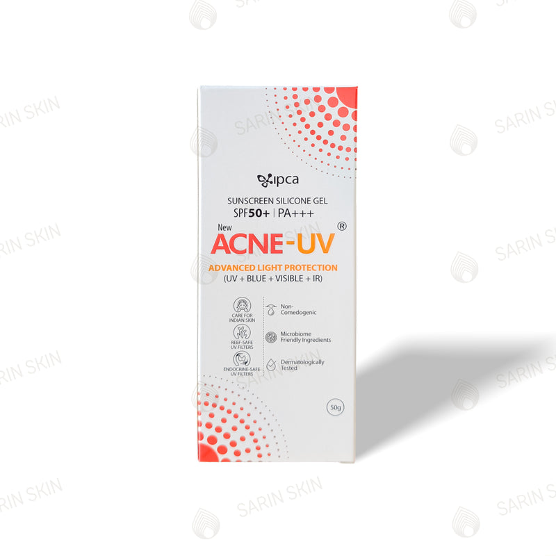 IPCA Acne-UV Gel Sunscreen SPF 50/PA+++ is a broad-spectrum, oil-free, and non-comedogenic gel sunscreen designed for oily and acne-prone skin. It offers robust protection against harmful UVA and UVB rays, prevents tanning, sunburns, and photodamage, while delaying premature aging of the skin. Ideal for full-body use, IPCA Acne-UV Gel Sunscreen maintains skin texture without clogging pores, ensuring healthy, clear and radiant skin.