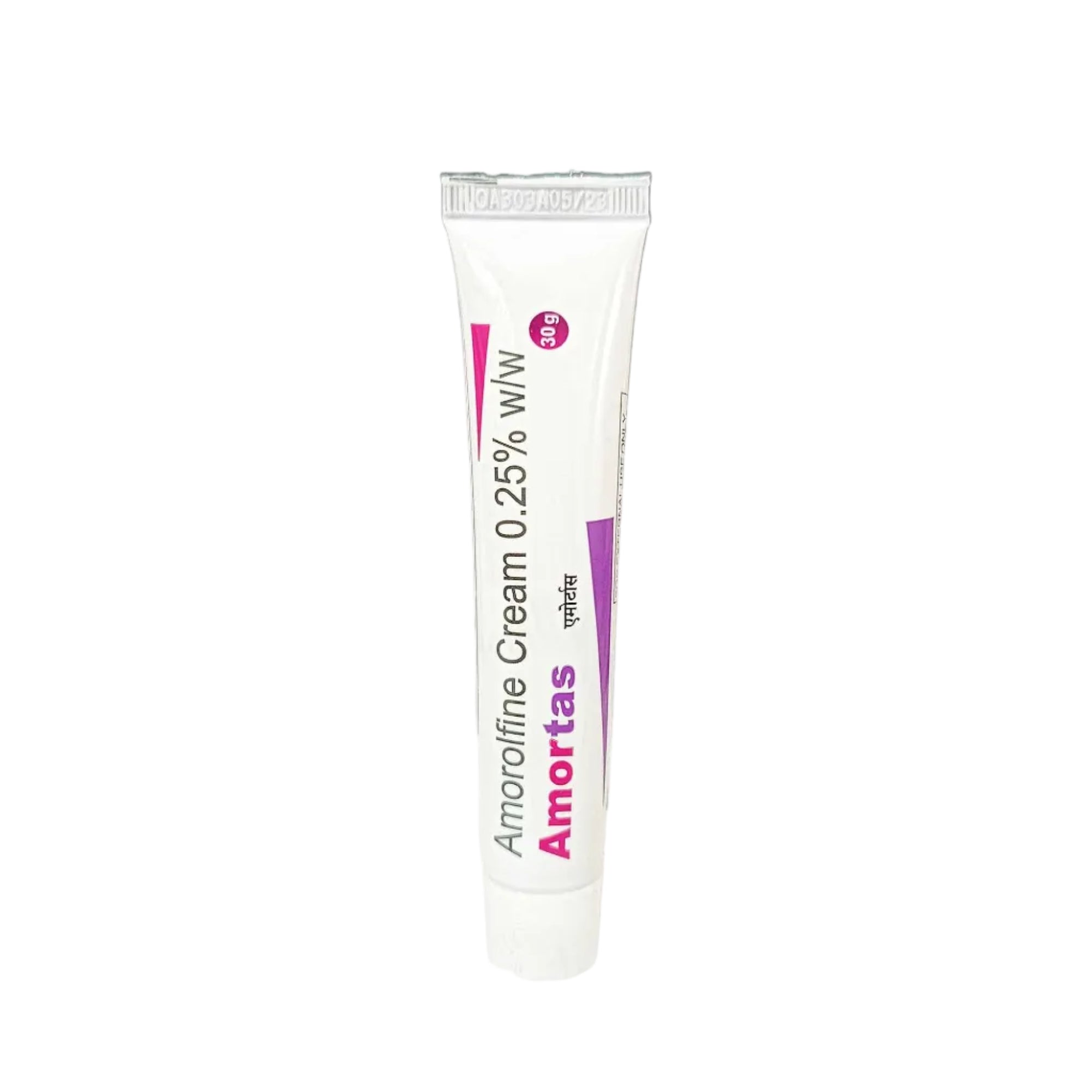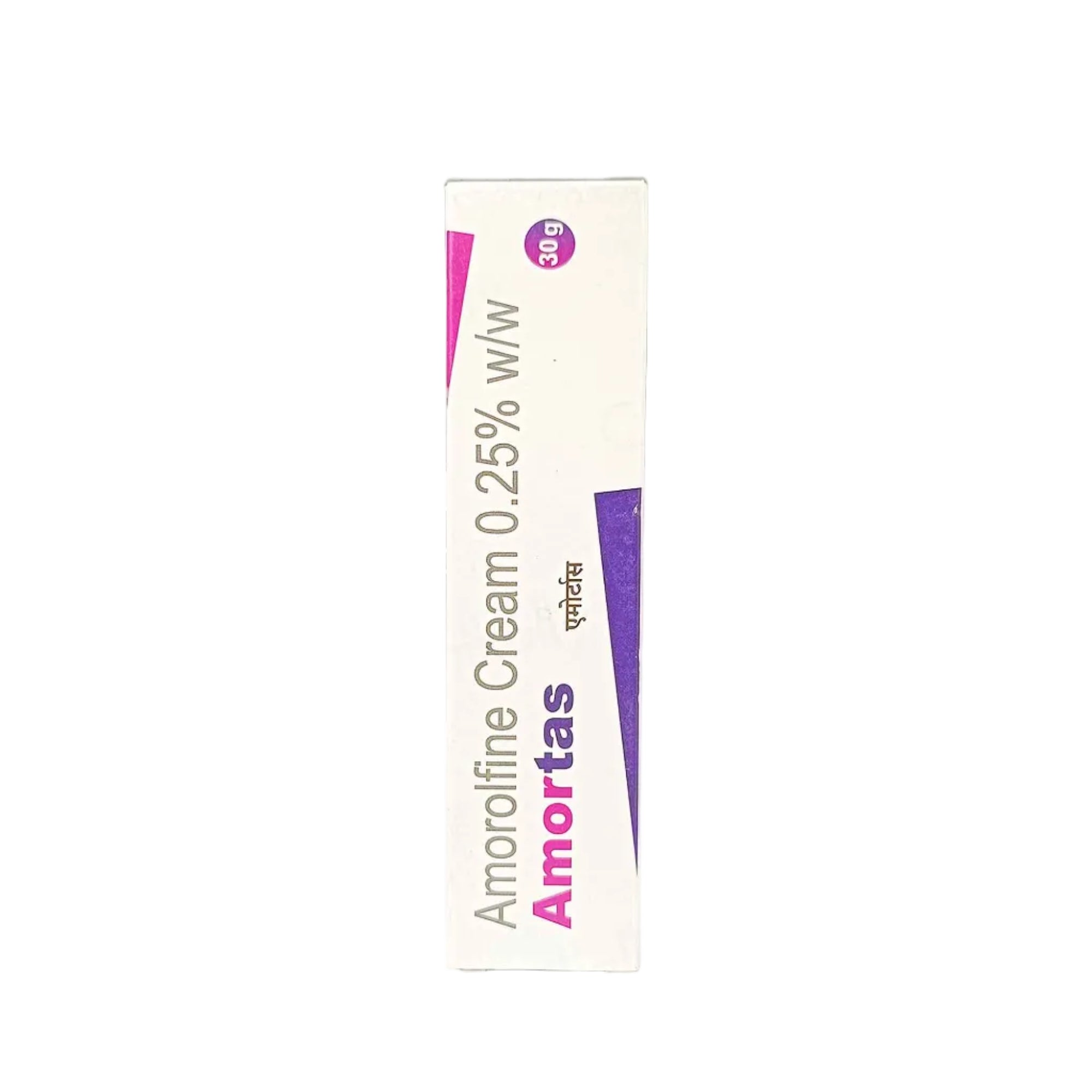 Amortas Cream is a topical antifungal formulation containing Amorolfine 0.25% w/w, commonly recommended by healthcare professionals for managing fungal-related skin concerns. It works by inhibiting fungal growth on the skin, helping reduce symptoms such as itching, redness, and scaling when used as directed. The non-greasy cream base allows for comfortable daily application on affected areas.