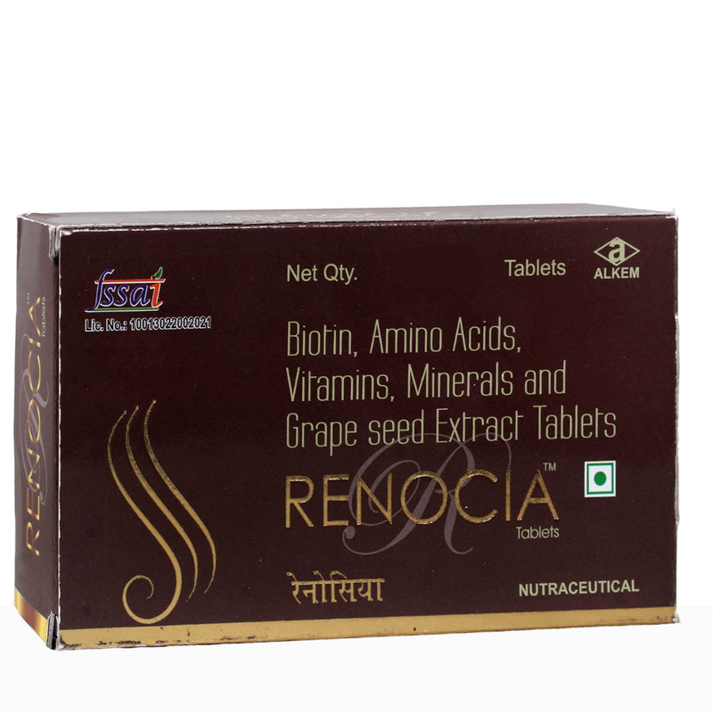 Renocia Tablet is a daily supplement made with biotin, amino acids, vitamins, minerals, and plant extracts. It supports overall nutrition related to the appearance of healthy-looking hair and can be used as part of a regular routine for men and women. With steady use, it helps maintain fuller, smoother, and well-nourished hair.