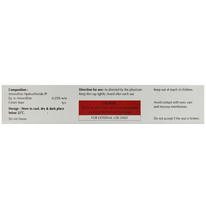 Amortive XL Cream is a topical antifungal formulation containing Amorolfine 0.25% w/w used in the management of fungal infections affecting the nails. It works by inhibiting the growth of fungi responsible for nail infections and supports gradual improvement in nail condition. With regular application as directed by a healthcare professional, it helps maintain healthier nail appearance and hygiene.