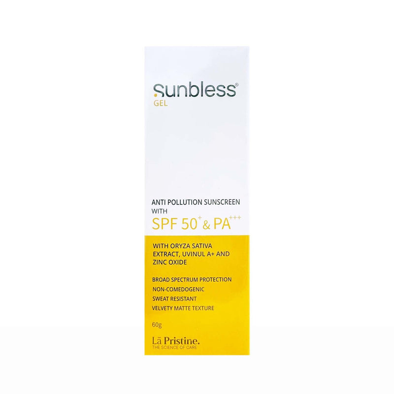 Sunbless Anti-Pollution Sunscreen Gel SPF 50+ PA+++ is a lightweight, non-comedogenic gel sunscreen made for people who prefer a smooth, matte finish. With Oryza Sativa Extract, Uvinul A+, and Zinc Oxide, it helps protect the skin during sun exposure and gives a fresh, comfortable feel through the day. The sweat-friendly, oil-free texture works well for warm weather and suits oily or combination skin.