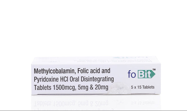 • Fobit Disintegrating Tablet is a vitamin B-complex supplement designed to support neurological health, red blood cell formation, and overall energy levels. It combines Methylcobalamin, Folic Acid, and Pyridoxine HCl in an orally disintegrating format that dissolves quickly without water, making it ideal for individuals with active lifestyles or difficulty swallowing tablets. Recommended by physicians for managing vitamin B deficiencies, it helps restore balance and prevent fatigue, nerve disorders, and anemia.