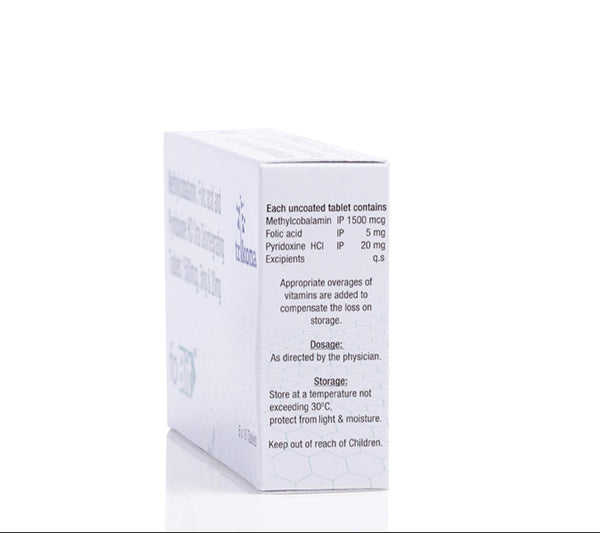 It contains Methylcobalamin, Folic Acid, Pyridoxine HCl, and excipients.