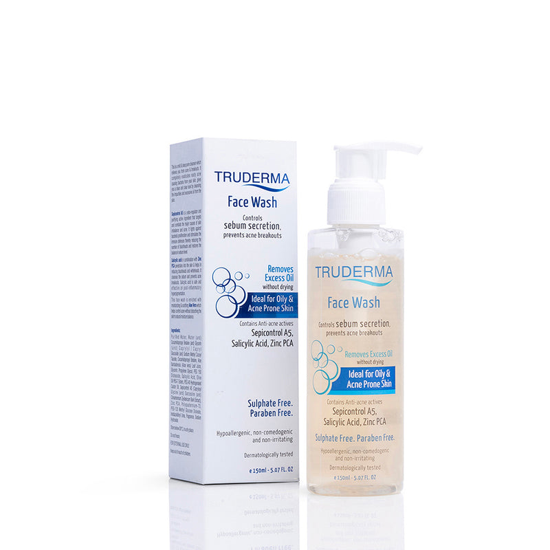 Truderma Face Wash is a daily cleanser that helps refresh the skin while supporting clarity and comfort. It reduces surface impurities and helps control acne-causing bacteria, making it suitable for breakout-prone skin. The formula also hydrates and nourishes, leaving the skin soft, calm, and balanced after each wash. Suitable for all skin types.