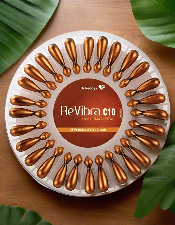 ReVibra C10 Pure Vitamin C Cream delivers stabilized ascorbic acid in single-use vegicaps to maintain maximum freshness and potency. It helps brighten dull skin, reduce pigmentation, and support smoother, healthier-looking texture. The non-comedogenic, fragrance-free formula absorbs easily and suits all skin types, offering gentle daily antioxidant care.