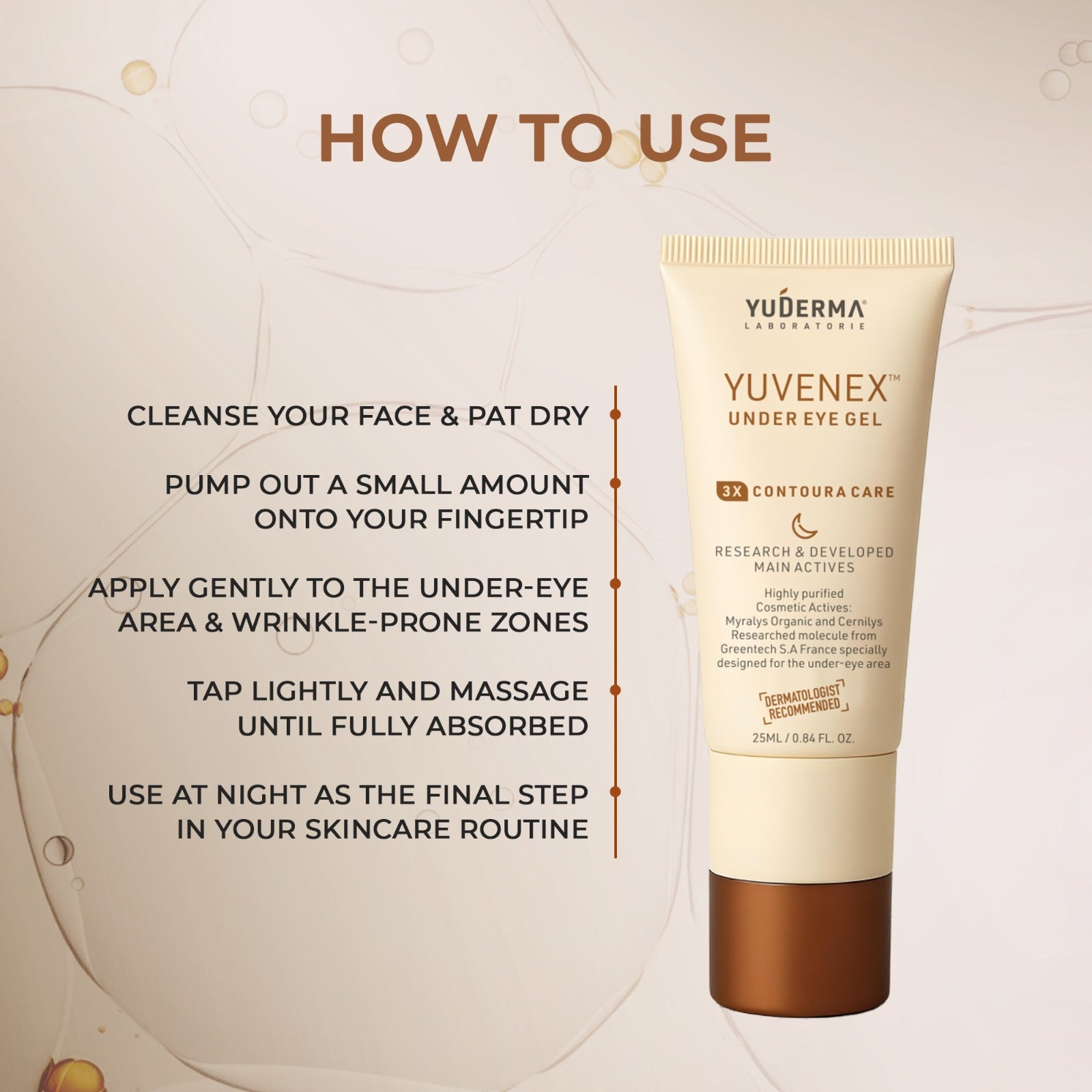 Yuderma Yuvenex Under Eye Gel is a light, non-greasy gel made for the delicate skin under the eyes. With gentle botanical extracts and peptides, it helps the area look smoother, brighter, and well-hydrated. The cooling texture absorbs quickly and supports a refreshed appearance with regular use.