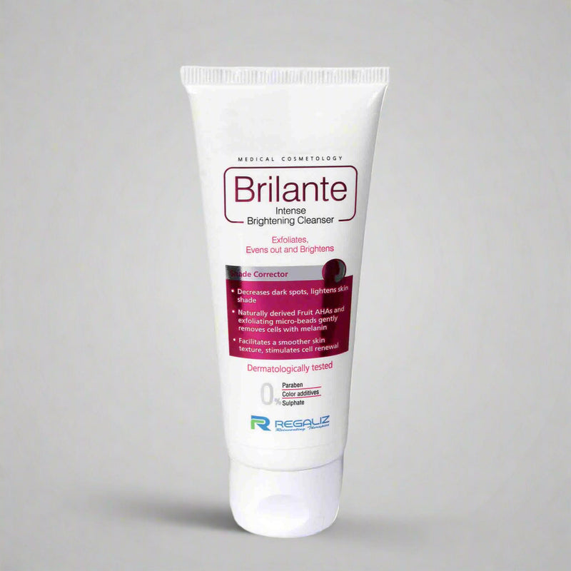 Brilante Intense Brightening Cleanser is a daily-use formula that helps remove dull, dead skin cells and reveal a fresher-looking surface. With fruit AHAs and soft micro-beads, it supports gentle exfoliation while active ingredients like alpha arbutin, butyl resorcinol, and liquorice root extract help improve skin clarity. The cleanser also provides light hydration, making it suitable for people with dehydrated or tired-looking skin. Free from parabens, sulfates, and added colors, it’s a simple and effective option for anyone aiming for a brighter, smoother complexion.