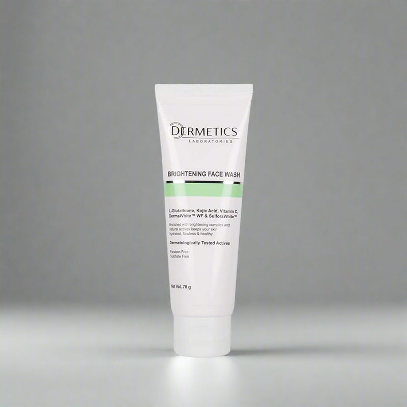 Dermetics Brightening Face Wash is a refreshing cleanser that helps support a naturally radiant, healthy-looking complexion. Enriched with mild exfoliating and conditioning ingredients, it removes surface impurities, oil, and buildup without drying the skin. With regular use, it helps maintain a soft, smooth feel and a fresh, luminous look. Suitable for daily use on all skin types.