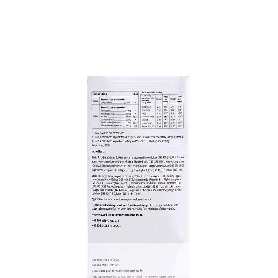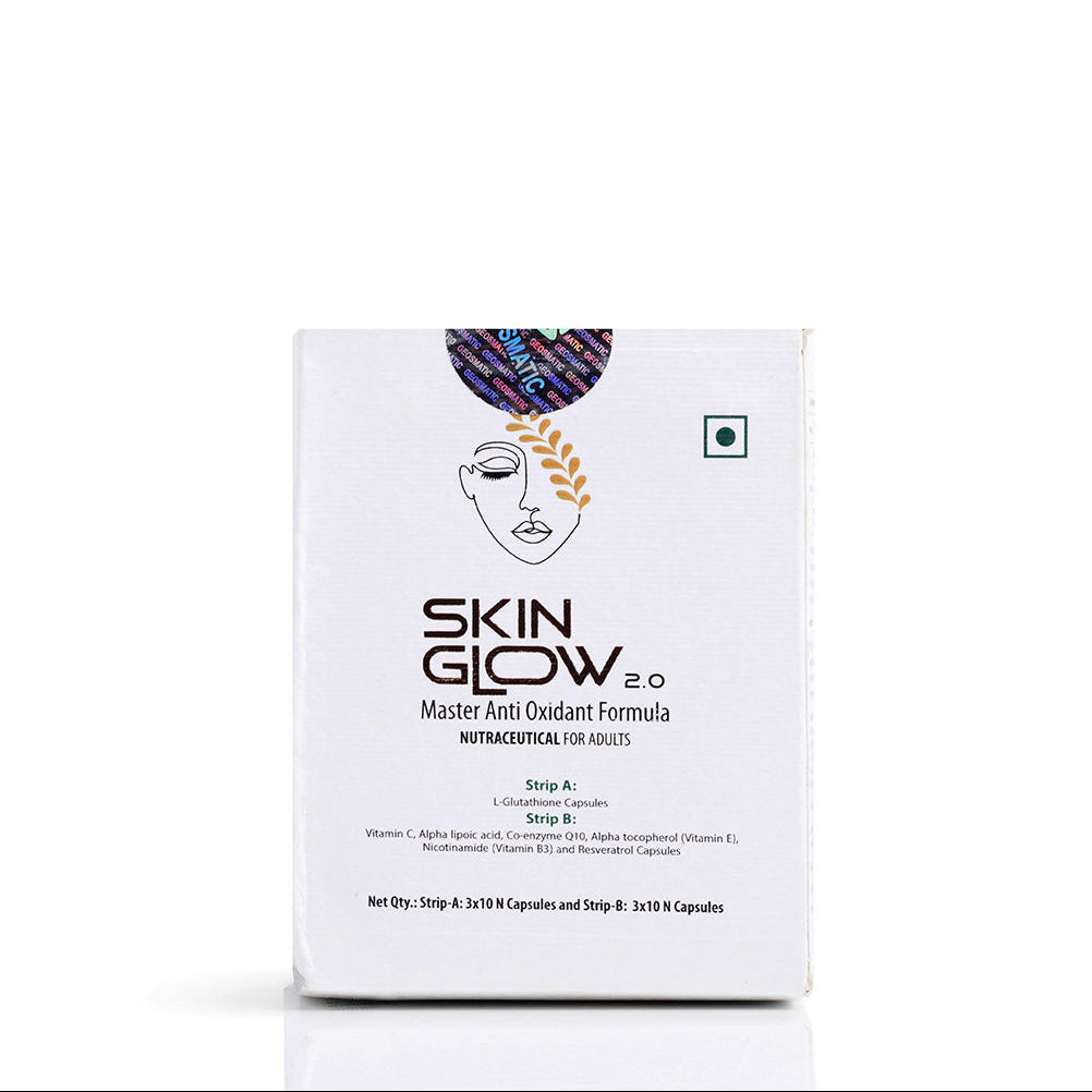 Skin Glow 2.0 is a nutraceutical capsule made to support adult skin health from the inside. It brings together key antioxidants that help fight free radicals, assist natural collagen formation, and keep the skin looking healthy. With regular use, it supports the skin’s ability to handle daily environmental stress and maintain a steady, natural glow.